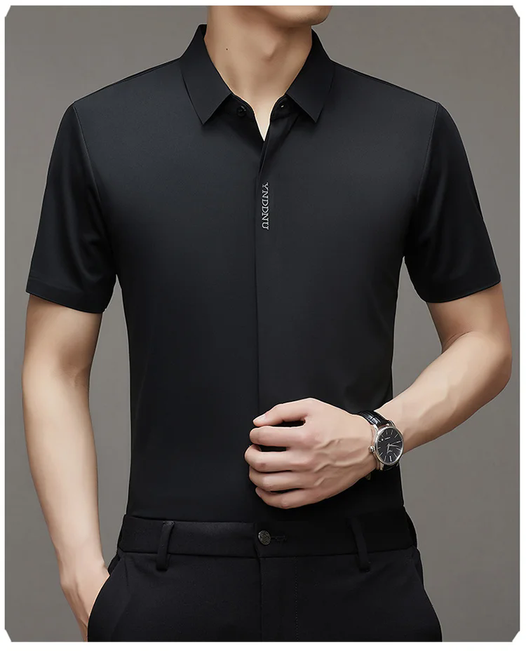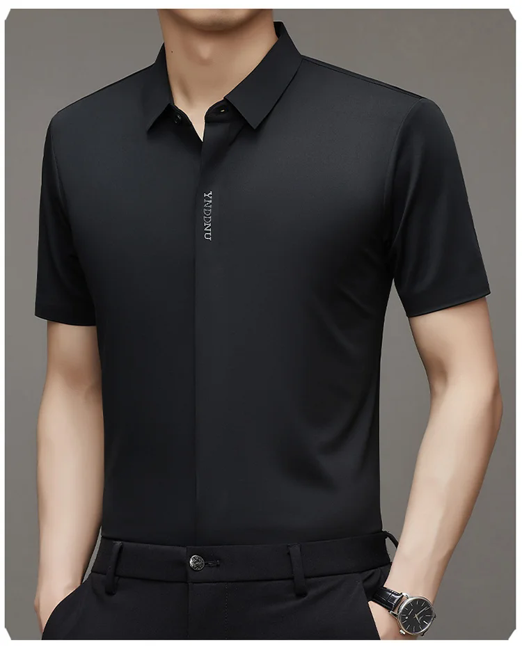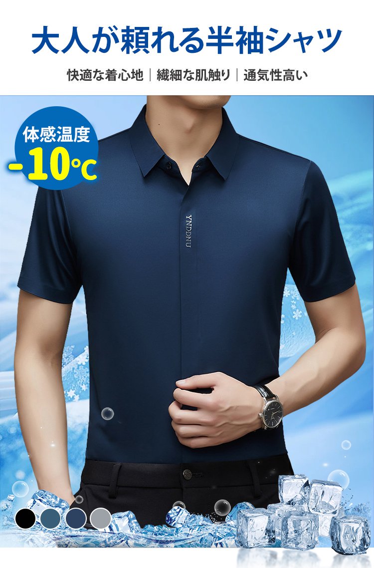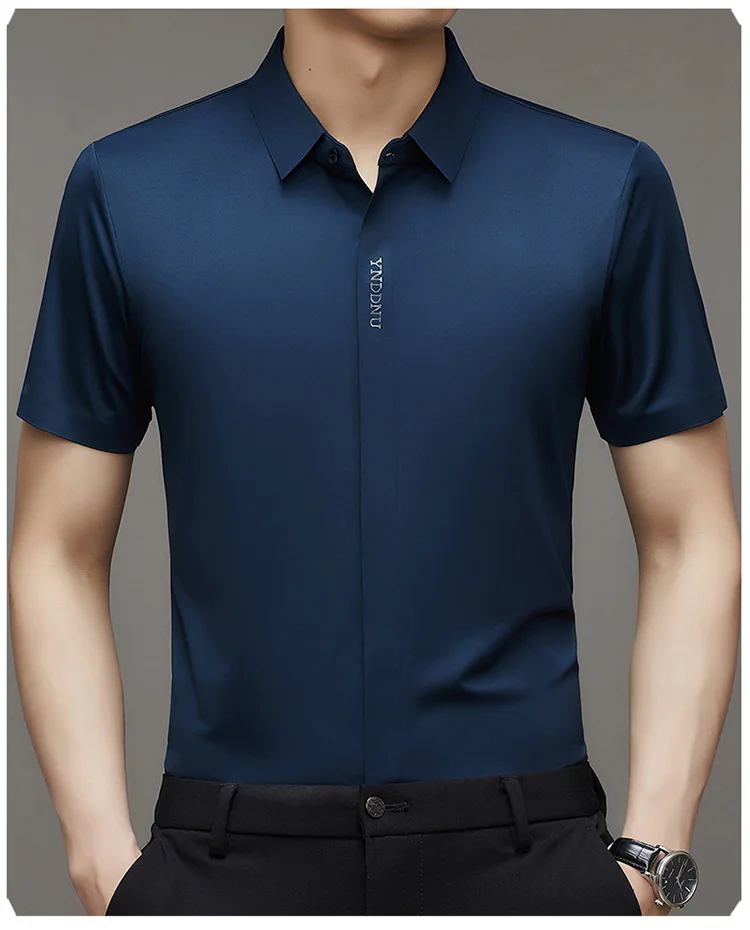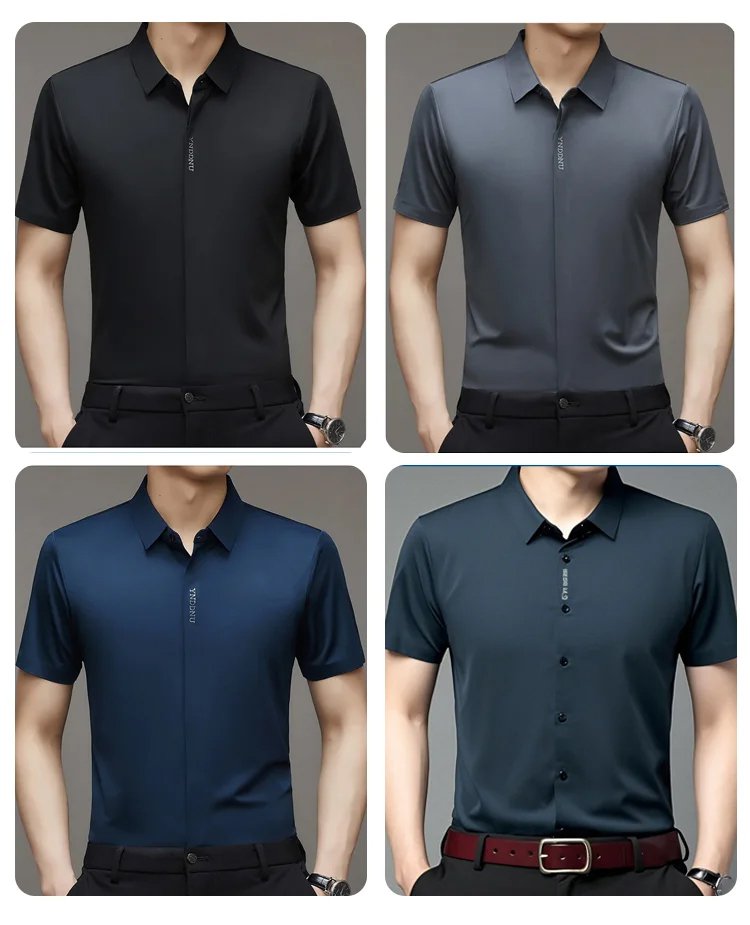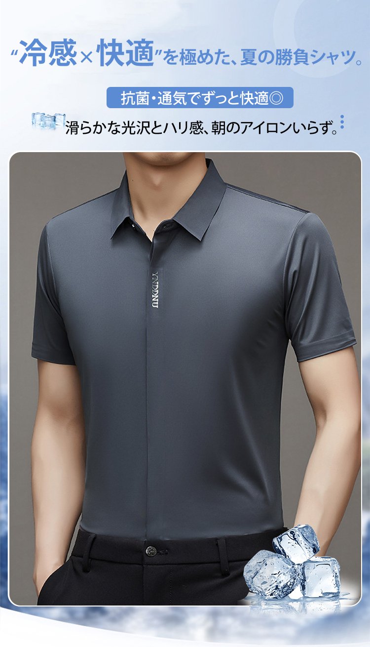 成功した男性が着るためのアイスシルクシャツ!高級/冷却、10年間着ても洗っても形崩れせず色褪せしない