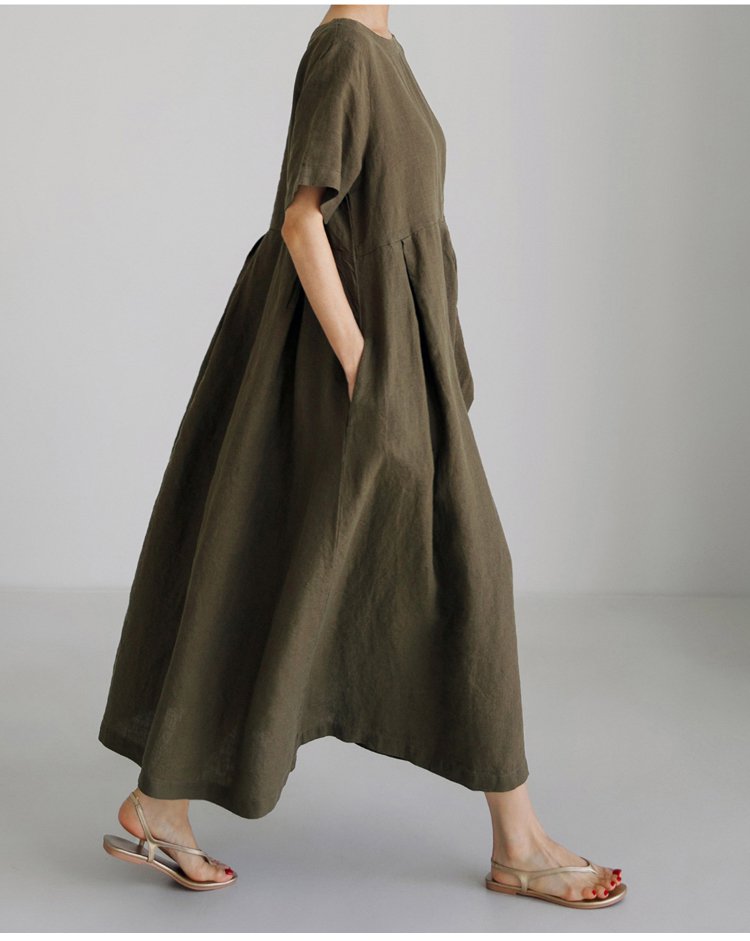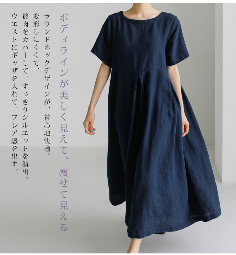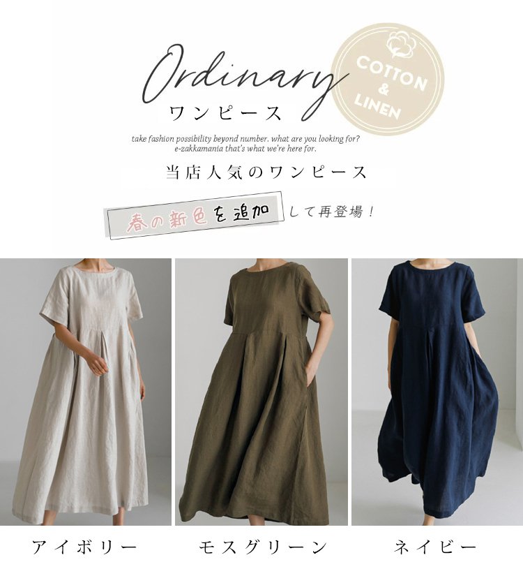 【2025 夏新作】 綿麻生地、痩せ見え、贅肉カバー、通気吸湿、エコ捺染